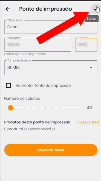 Para escolher os produtos que serão impressos neste ponto de impressão ao ser feito um pedido, clique em Selecionar.