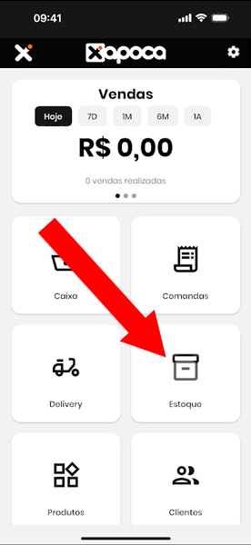 - Na dashboard, acesse Estoque.